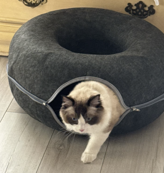 “My cat jumped right in and hasn’t left since. She purrs herself to sleep every night in her DreamDonut™.”