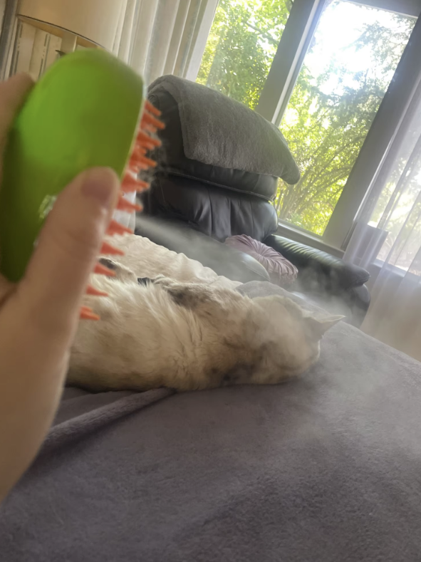 Unlike regular brushes, the MistyGroomer gently detangles fur while releasing a fine, soothing mist that reduces odors and keeps your cat’s coat silky.